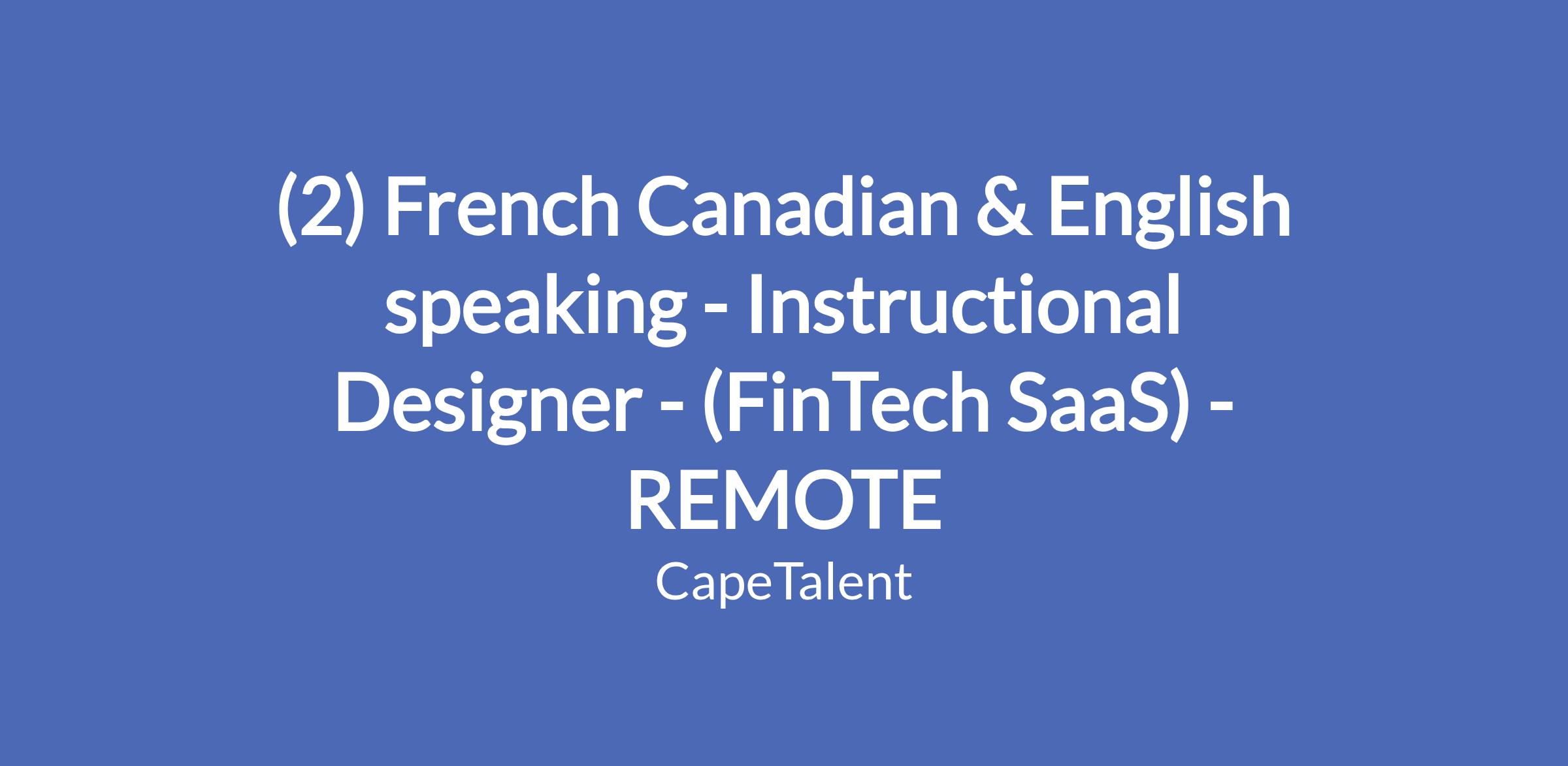 📢 (2) French Canadian & English speaking - Instructional Designer - (FinTech SaaS) - REMOTE