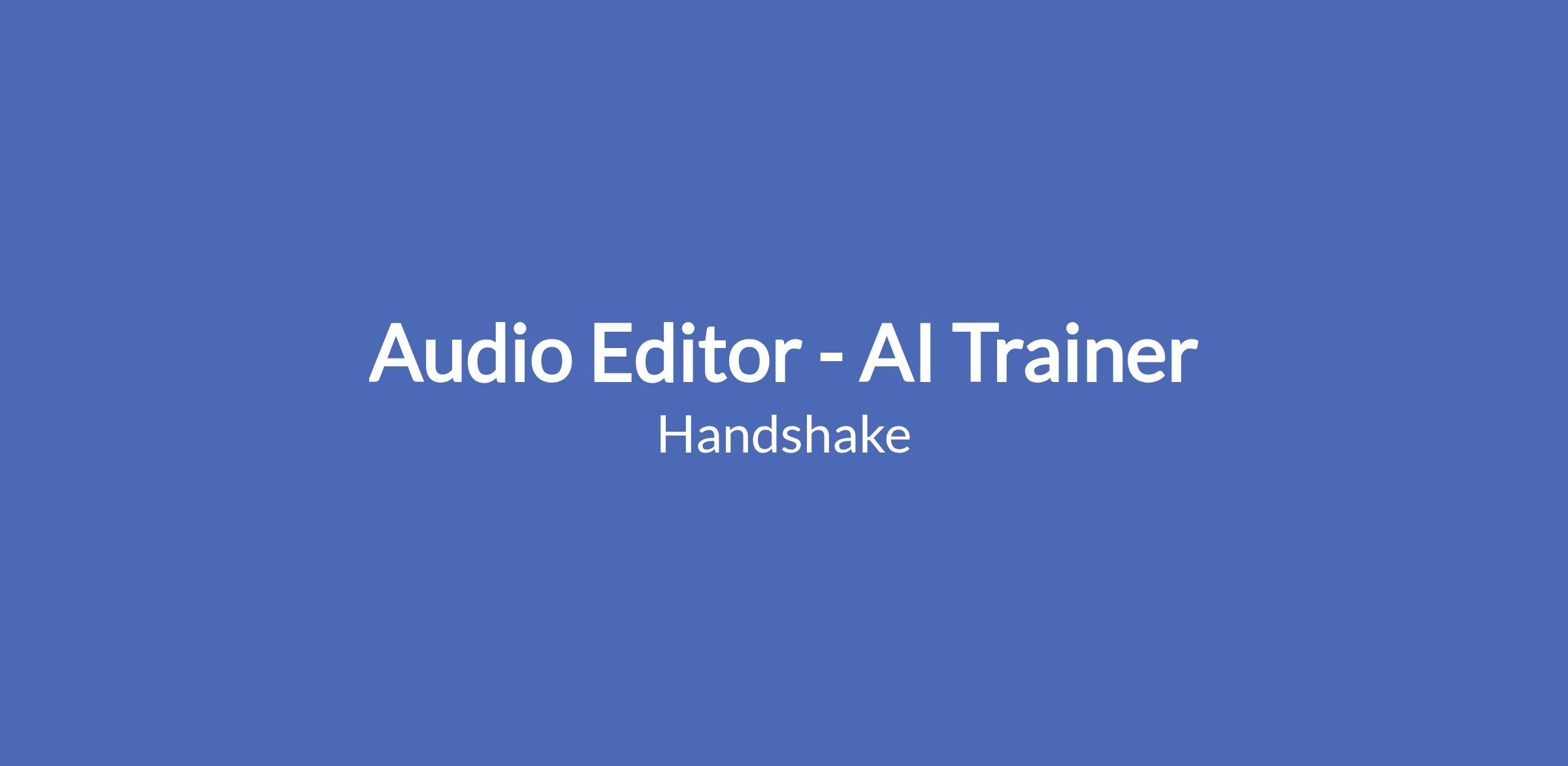 Handshake is looking for skilled Audacity users to support AI research through flexible, hourly contract work. This is not a traditional job. You'll draw on your hands-on experience with audio editing, podcast production, or voice-over recording to evaluate AI-generated content and provide feedback that helps AI better understand audio tasks and post-production workflows.