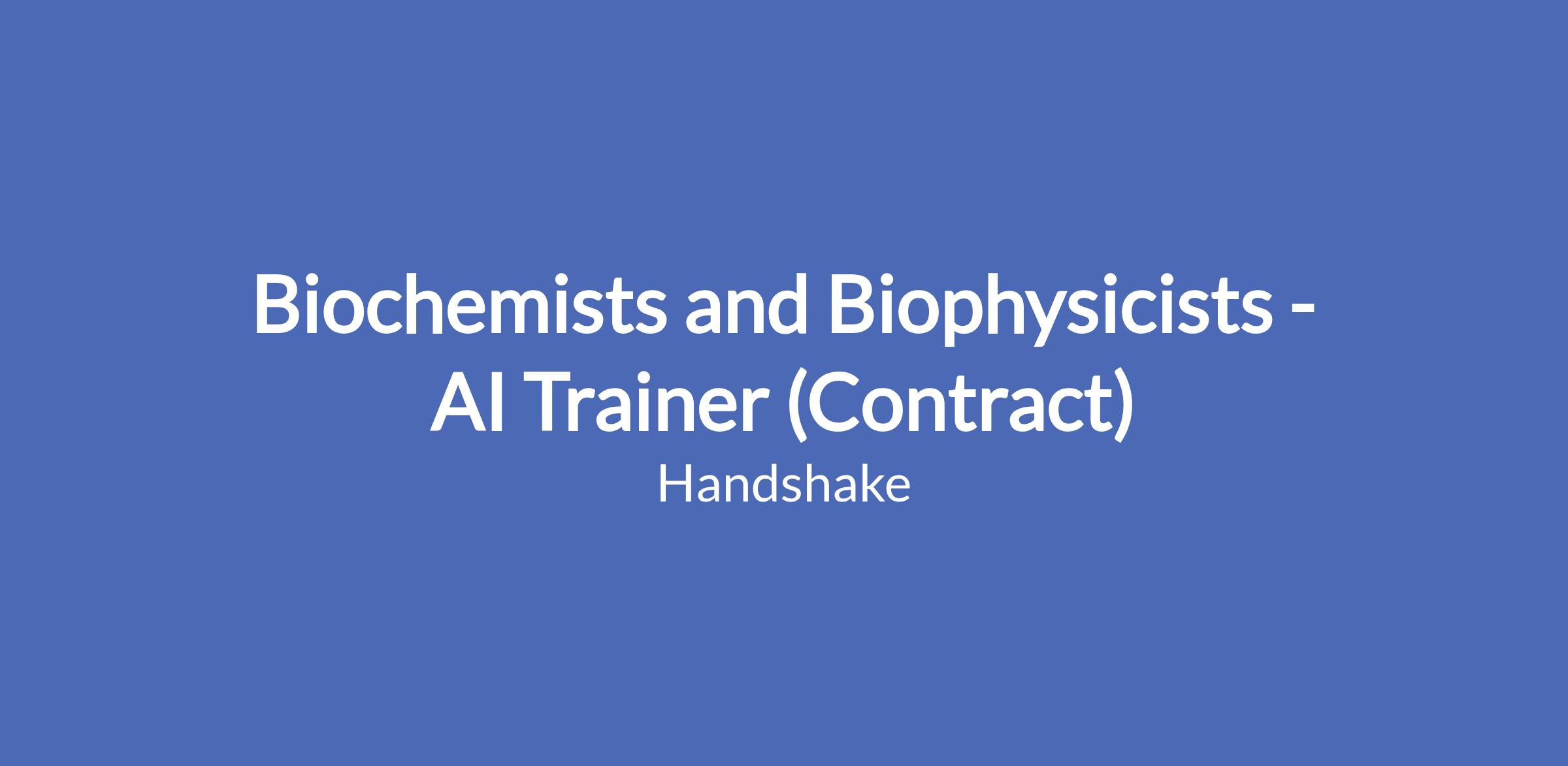 Handshake is recruiting Biochemist and Biophysicist Professionals to contribute to an hourly, temporary AI research project—but there’s no AI experience needed. In this program, you’ll leverage your professional experience to evaluate what AI models produce in your field, assess content related to your field of work, and deliver clear, structured feedback that strengthens the model’s understanding of your workplace tasks and language. The Handshake AI opportunity runs year-round, with project opportunities opening periodically across different areas of expertise.