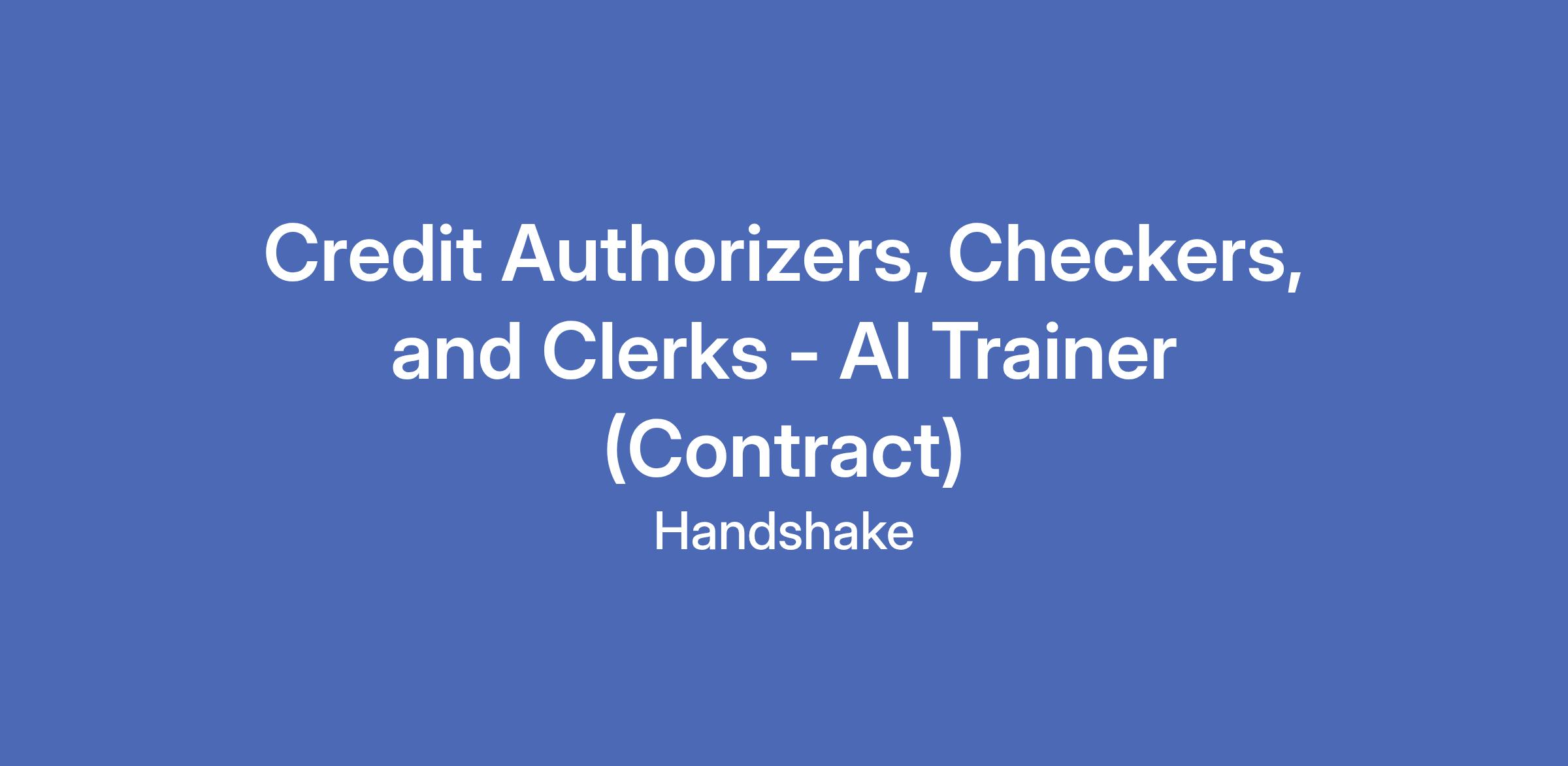 Handshake is recruiting Credit Authorizers, Checkers, and Clerk Professionals to contribute to an hourly, temporary AI research project—but there’s no AI experience needed. In this program, you’ll leverage your professional experience to evaluate what AI models produce in your field, assess content related to your field of work, and deliver clear, structured feedback that strengthens the model’s understanding of your workplace tasks and language. The Handshake AI opportunity runs year-round, with project opportunities opening periodically across different areas of expertise.