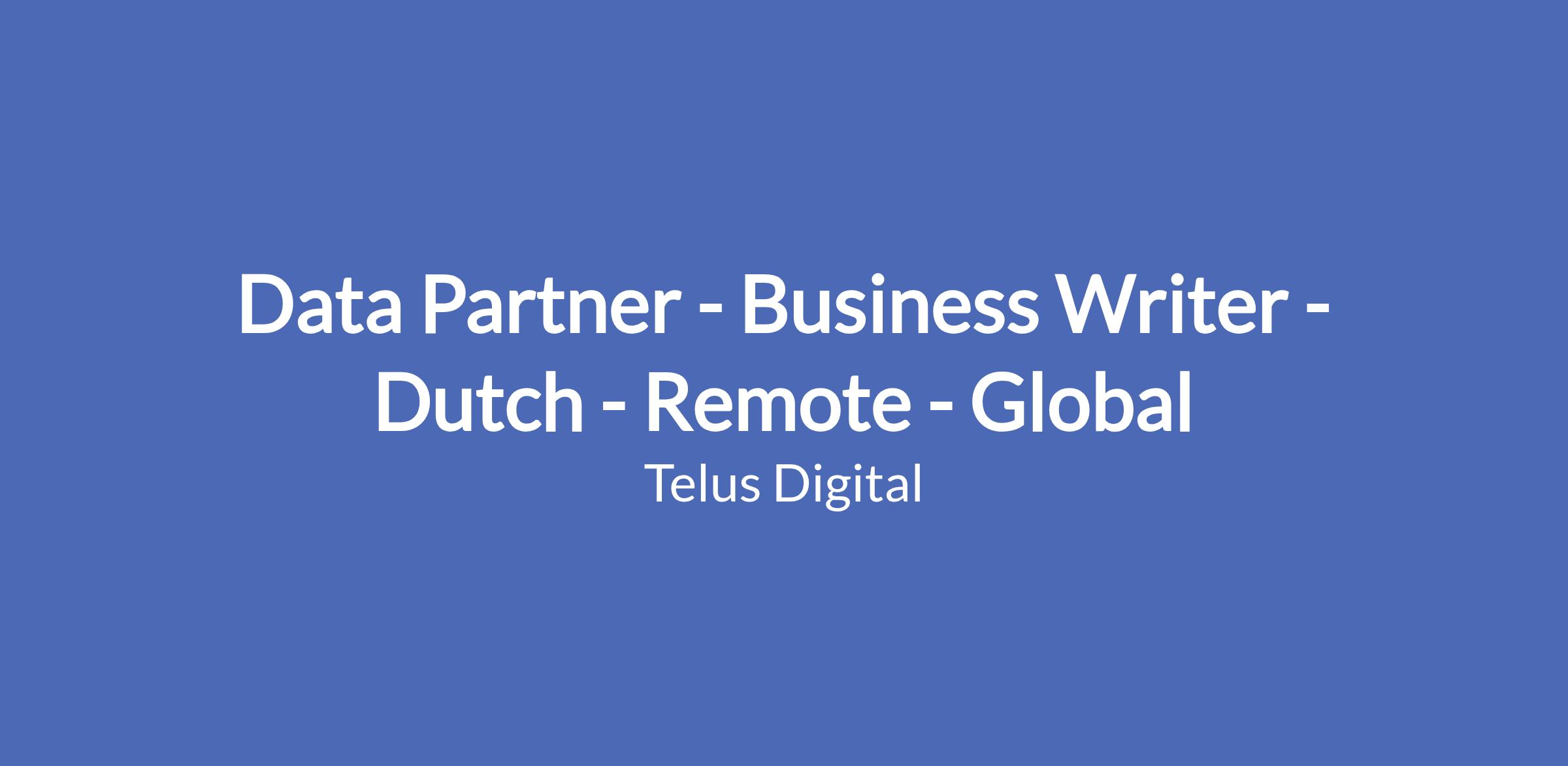 Data Partner - Business Writer - Dutch - Remote - Global