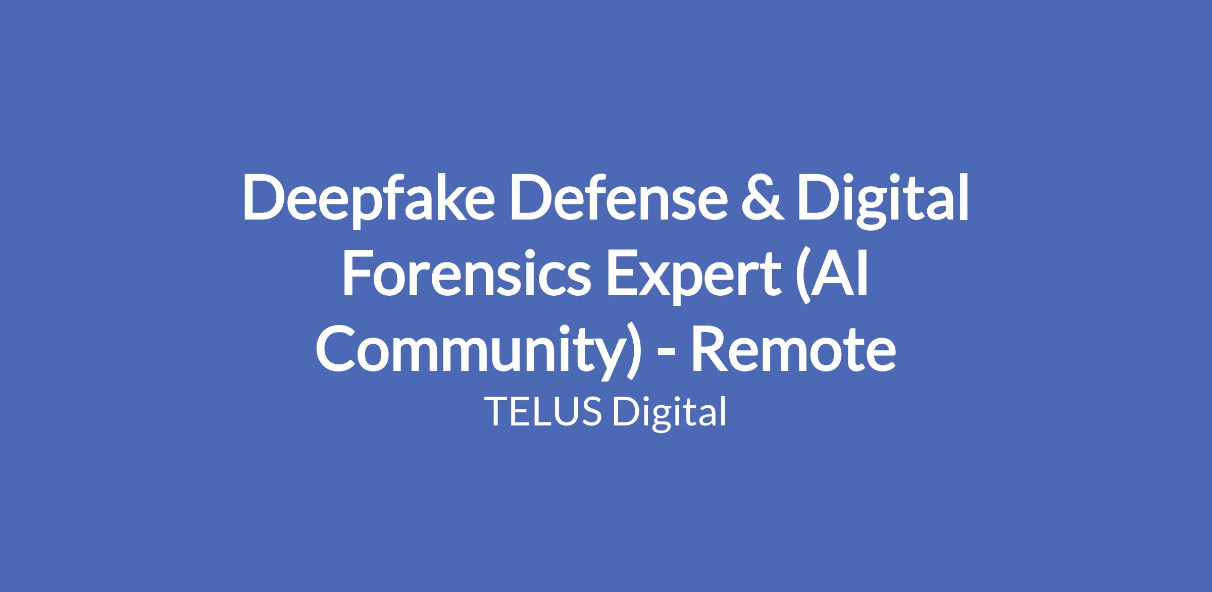 In an era of synthetic media, safety is paramount. TELUS Digital is looking for freelance experts in digital forensics to help train the next generation of deepfake detection models. You will use your specialized "detective" skills to identify the subtle artifacts of AI-generated content, helping us build a more secure digital world.