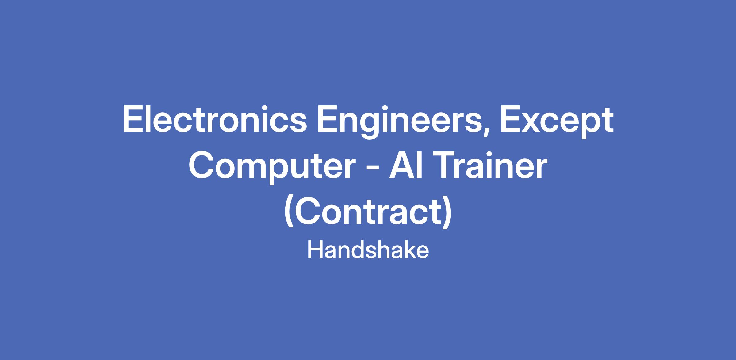 Handshake is recruiting Electronics Engineer Professionals to contribute to an hourly, temporary AI research project—but there’s no AI experience needed. In this program, you’ll leverage your professional experience to evaluate what AI models produce in your field, assess content related to your field of work, and deliver clear, structured feedback that strengthens the model’s understanding of your workplace tasks and language. The Handshake AI opportunity runs year-round, with project opportunities opening periodically across different areas of expertise.