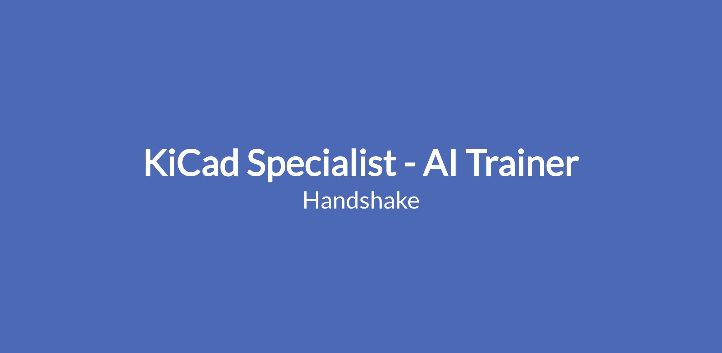 Handshake is looking for skilled KiCad users to support AI research through flexible, hourly contract work. This is not a traditional job. You'll draw on your hands-on experience with schematic capture, PCB layout, or embedded hardware design to evaluate AI-generated content and provide feedback that helps AI better understand electronics design tasks and EDA workflows.