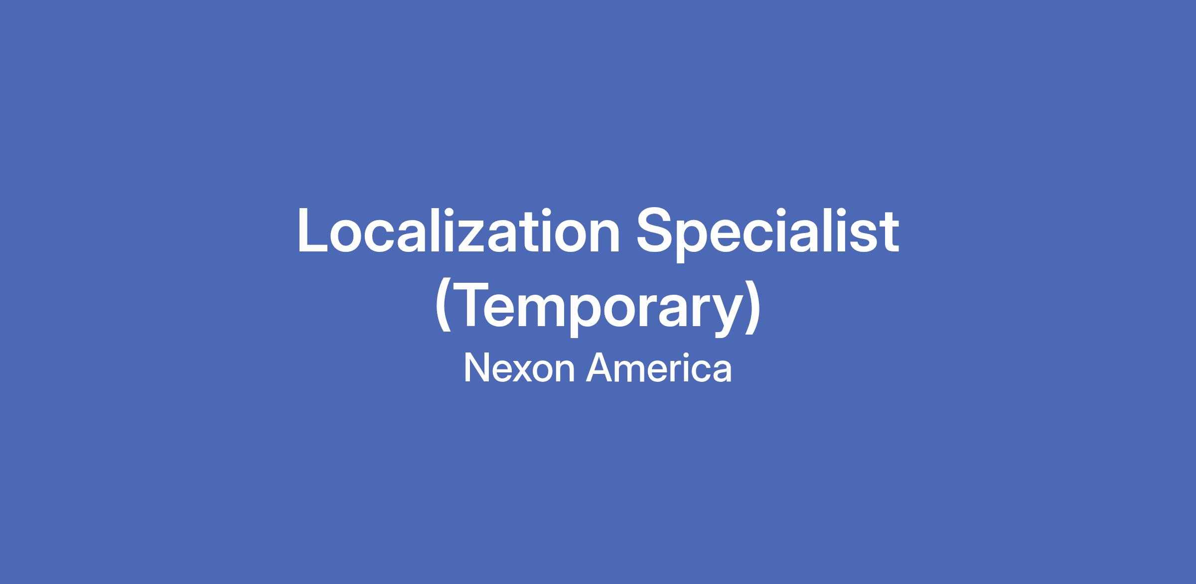 The Localization Specialist is responsible for translating and localizing all existing and new Nexon games. The candidate is also expected to perform content-related research on game updates and provide explanations on the original Korean content’s tone and style to the candidate's assigned project group. The candidate must be able to work on-site twice a week.