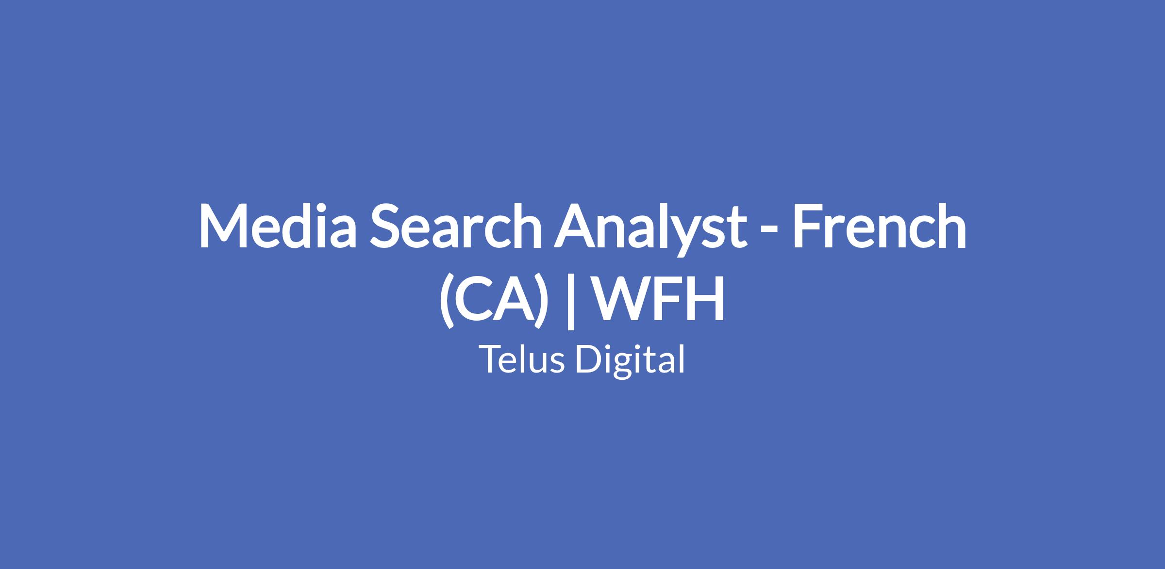 Media Search Analyst - French (CA) | WFH