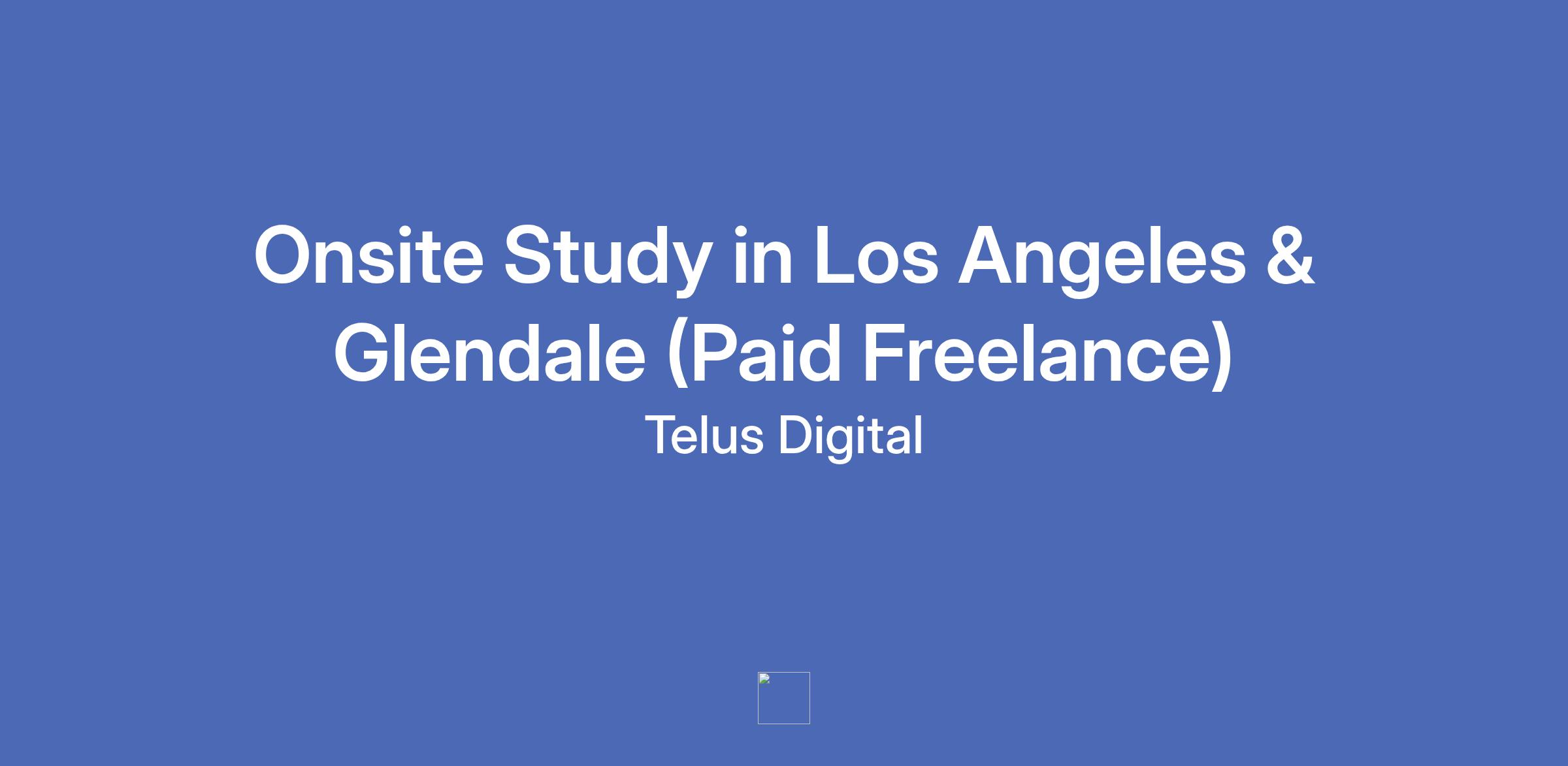 TELUS Digital is seeking participants for an onsite study. The study locations are in Glendale, Los Angeles, and Sunnyvale, in the San Jose area.